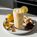 The viral lemon elixir is a more advanced version of the basic lemon water trend. It uses whole lemon with peel, ginger, honey, cinnamon, dates, olive oil, and water — blended until creamy. This variation is believed to support metabolism and digestion better than plain lemon water.